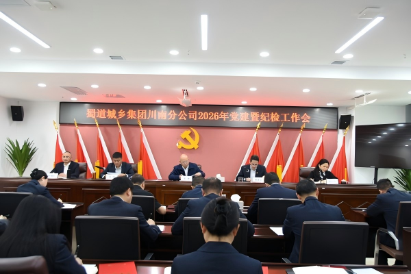 2026年3月25日,四川蜀道城乡投资集团有限责任公司川南分公司召开2026年度党建暨纪检工作会。会议深入学习贯彻党的二十大和二十届历次全会精神,全面落实省委十二届七次、八次全会决策部署,传达学习蜀道集团党建工作会、纪检监察工作会精神,以及蜀道城乡集团2026年党建暨纪检工作会精神,总结回顾2025年党建和纪检工作,安排部署2026年重点工作任务。川南分公司党委书记石勇作了题为《坚持党建引领 强化责任担当 以高质量党建引领保障川南分公司转型发展》的工作报告并讲话,党委委员、副总经理(主持工作)罗忠卫主持会议。